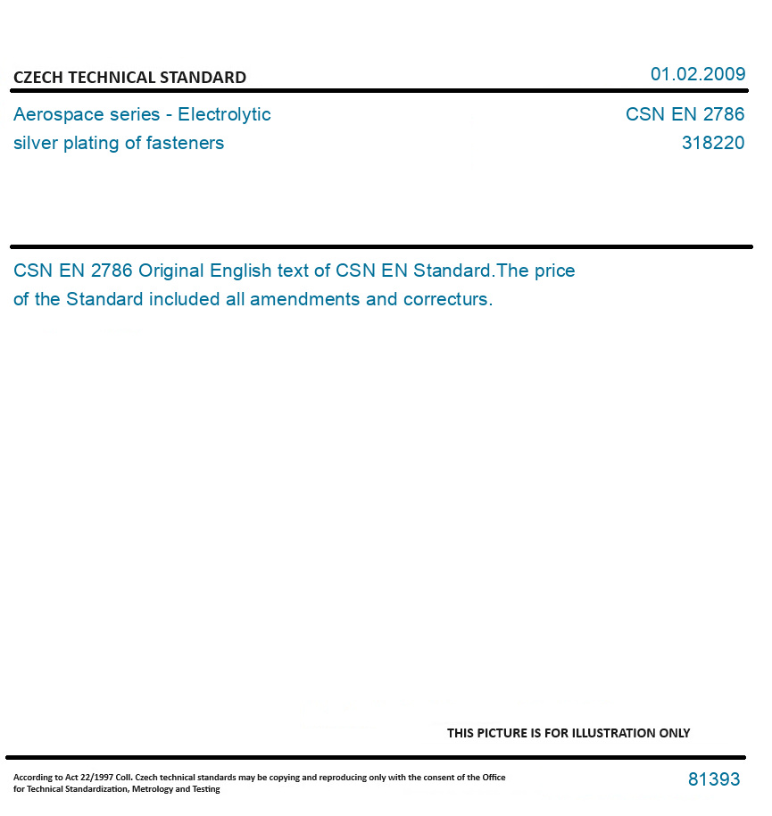 • CSN EN 2786 Aerospace series Electrolytic silver plating of fasteners
